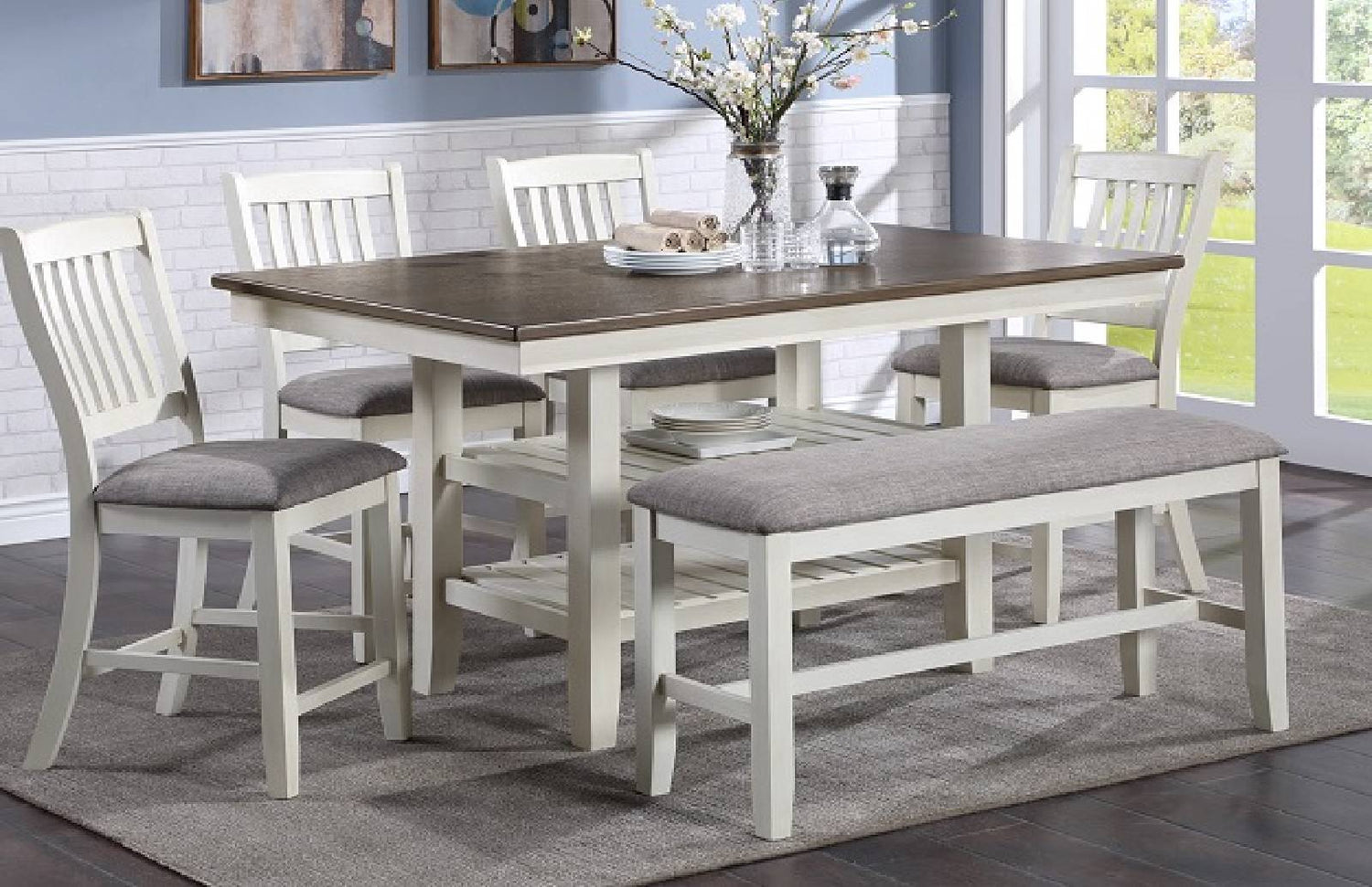 JORIE COUNTER HT BENCH CHALK G 48" X 15.5" X 24.5"H & CUSHION+FRAME 5.25"/ LEG 2"