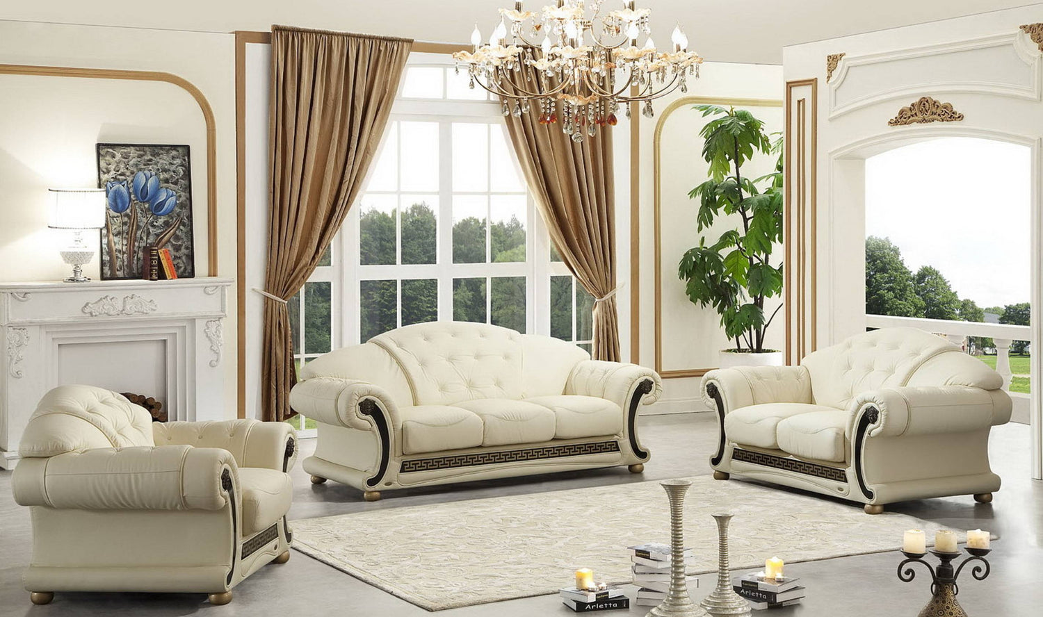This living room furniture set has an inviting appeal and comfort. Sofa, Loveseat and Chair are wrapped in finest genuine Italian leather. You can always special order it in variety of colors.