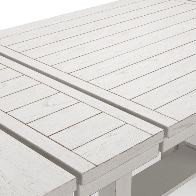 (Table)Made with rubberwood solids, ash veneer and MDF substratesTabletop with planked effectTwo 12” extension leavesTable extends by pulling both ends and dropping in leaf(Chairs)Made with woodAntiqued white finish with wood grain texture(Chairs)Foam cushion with polyester upholstery(Chairs)Nailhead trim