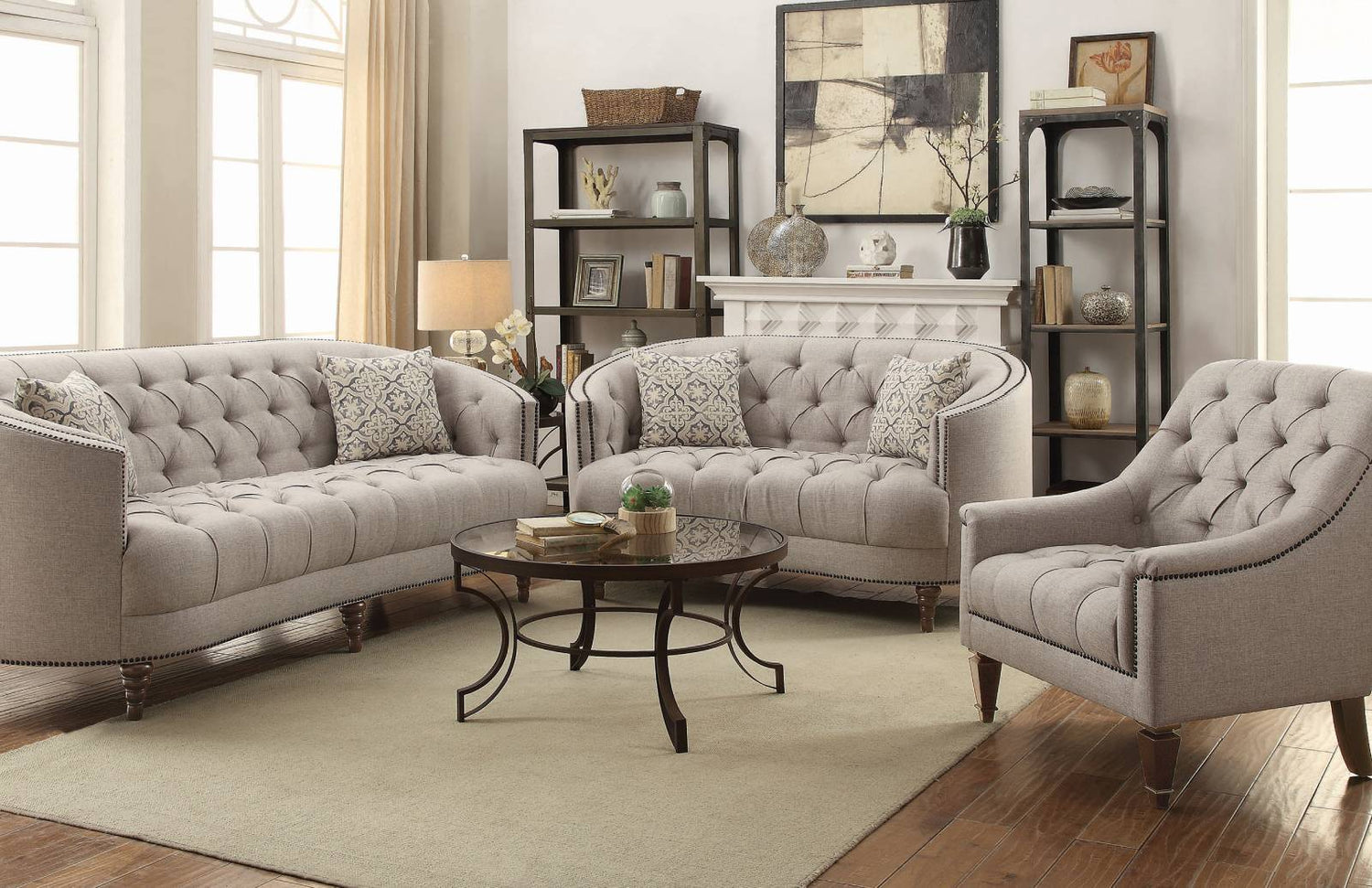 Avonlea Upholstered Tufted Living Room Set Grey - 505641-S3