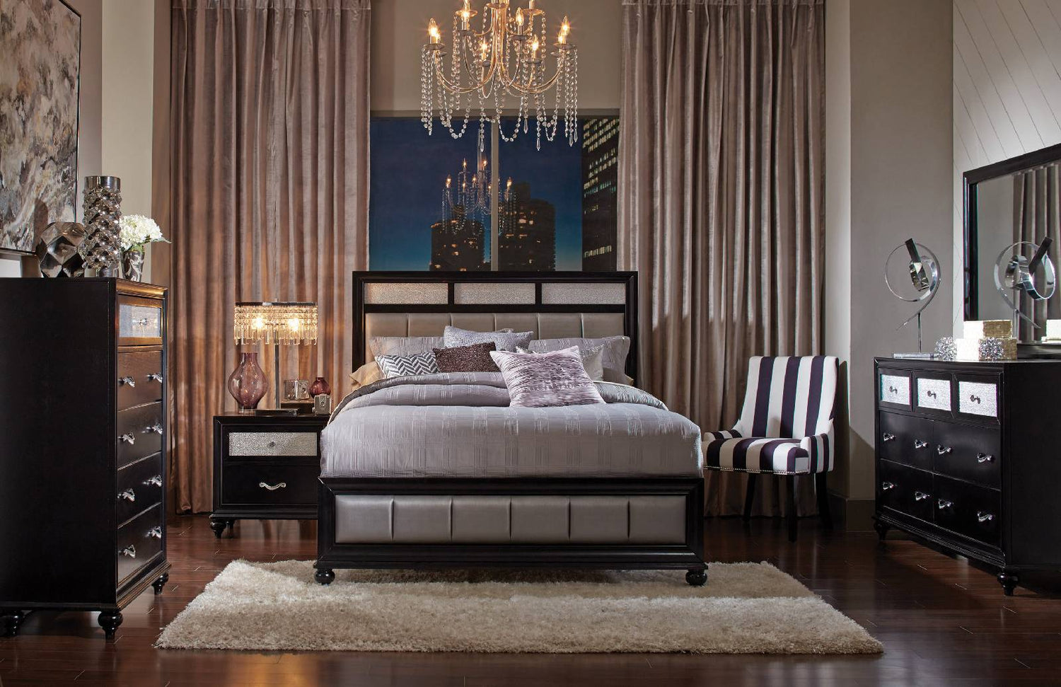 Barzini Bedroom Set With Upholstered Headboard Black- 200891