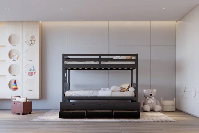 BB42 TWIN/TWIN Bunk Bed w/Twin Trundle + 3 Drawers (Black)