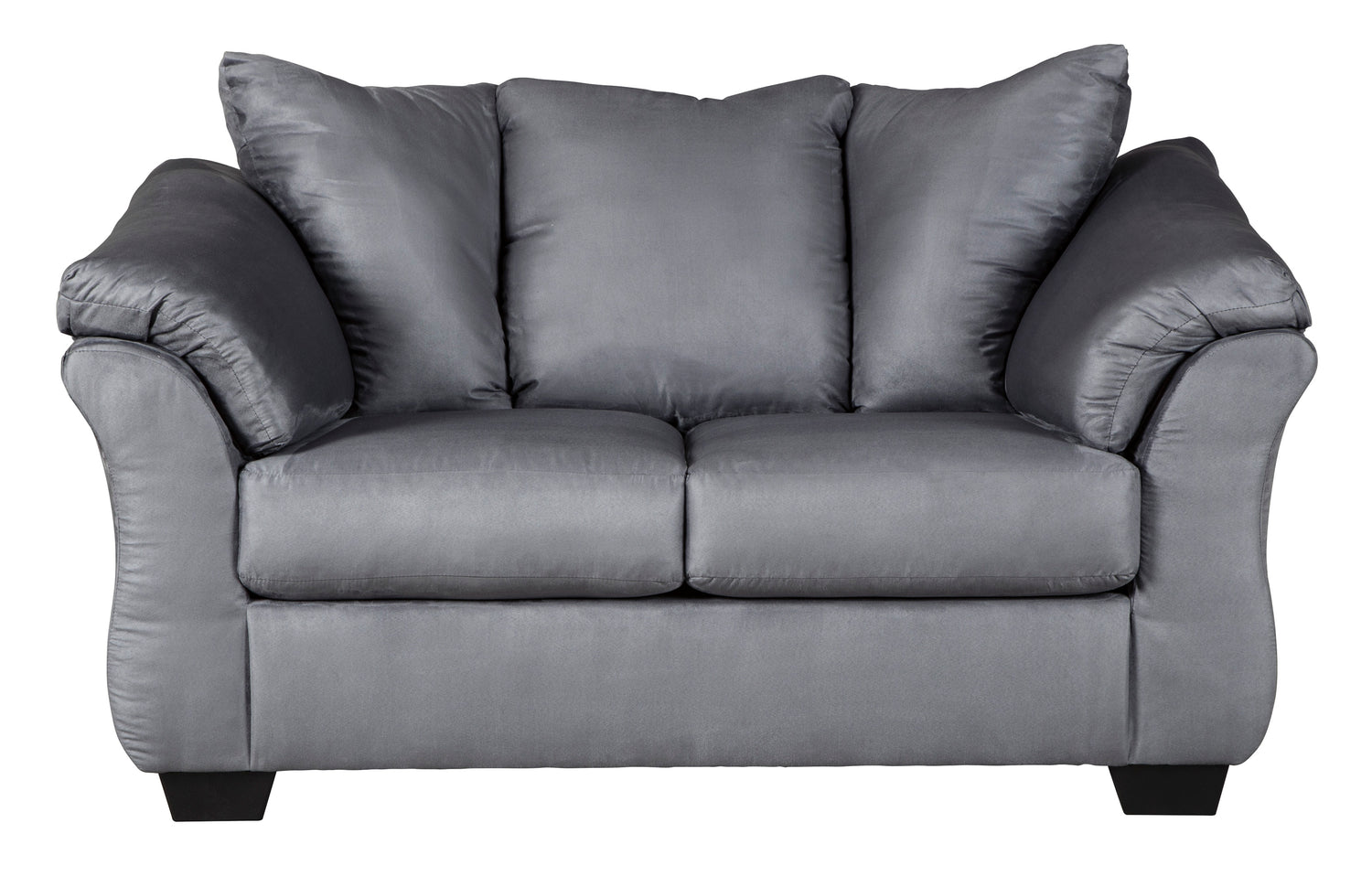 Talk about fine lines and great curves—that’s the beauty of the Darcy sofa and loveseat. Made to suit your appreciation for clean, contemporary style, this fashion statement is complete with a striking flared frame, comfy pillow top armrests and an ultra-soft upholstery that holds up to everyday living.- Includes sofa and loveseat