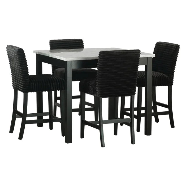 Material: Faux Marble Top Table, Black Cord Fabric Chairs