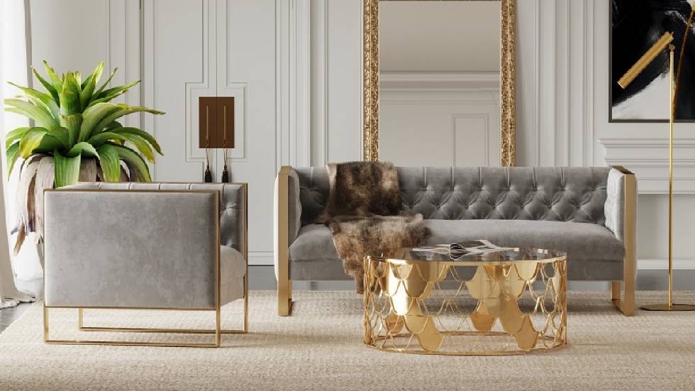Divani Casa Carlos Modern Grey Velvet & Gold