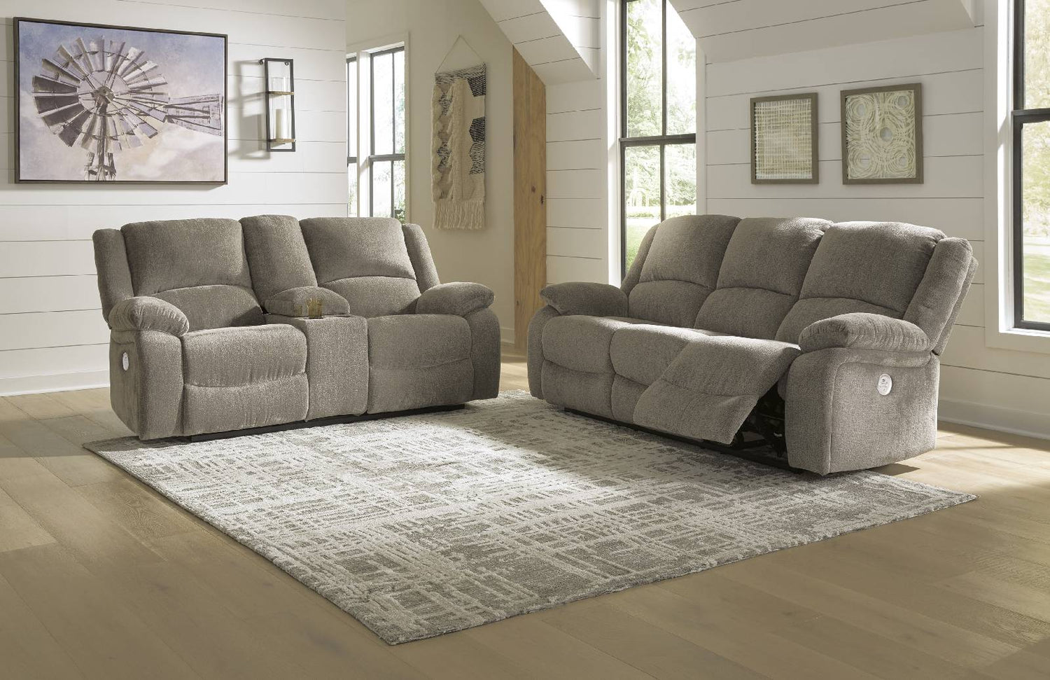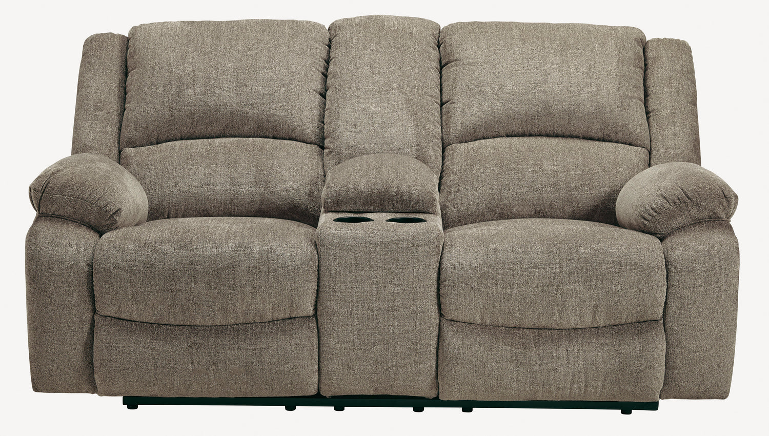 Built for luxury, the Draycoll reclining sofa and loveseat with center console lets you kick back in reliable style. The thick, softly textured chenille upholstery provides a comfy surface on which to lounge. With bustle back construction and thickly cushioned armrests, this set gives you the dependable support you need to unwind with the convenience of the loveseat’s center console to ease your evening.- Includes reclining sofa and loveseat with center console