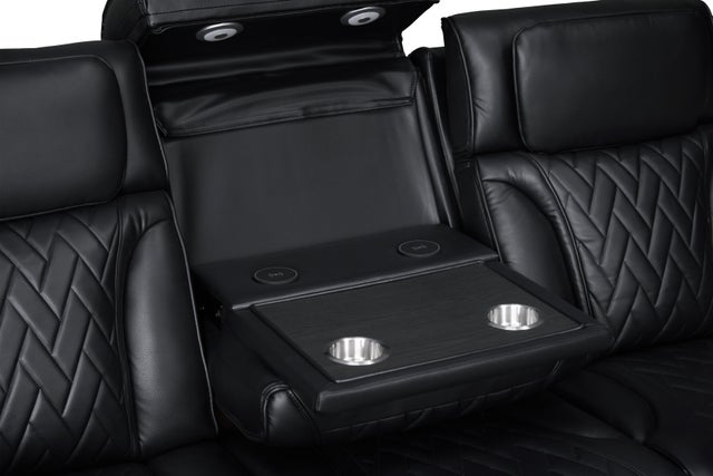 Power FootrestPower HeadrestLED LightingSofa Drop-down table with LED reading lights, dual cup holders, 2 electrical outlets and USB and wireless chargingBluetooth Speaker In LoveseatArmrests with flip-top storage and cup holderUSB Charging Ports