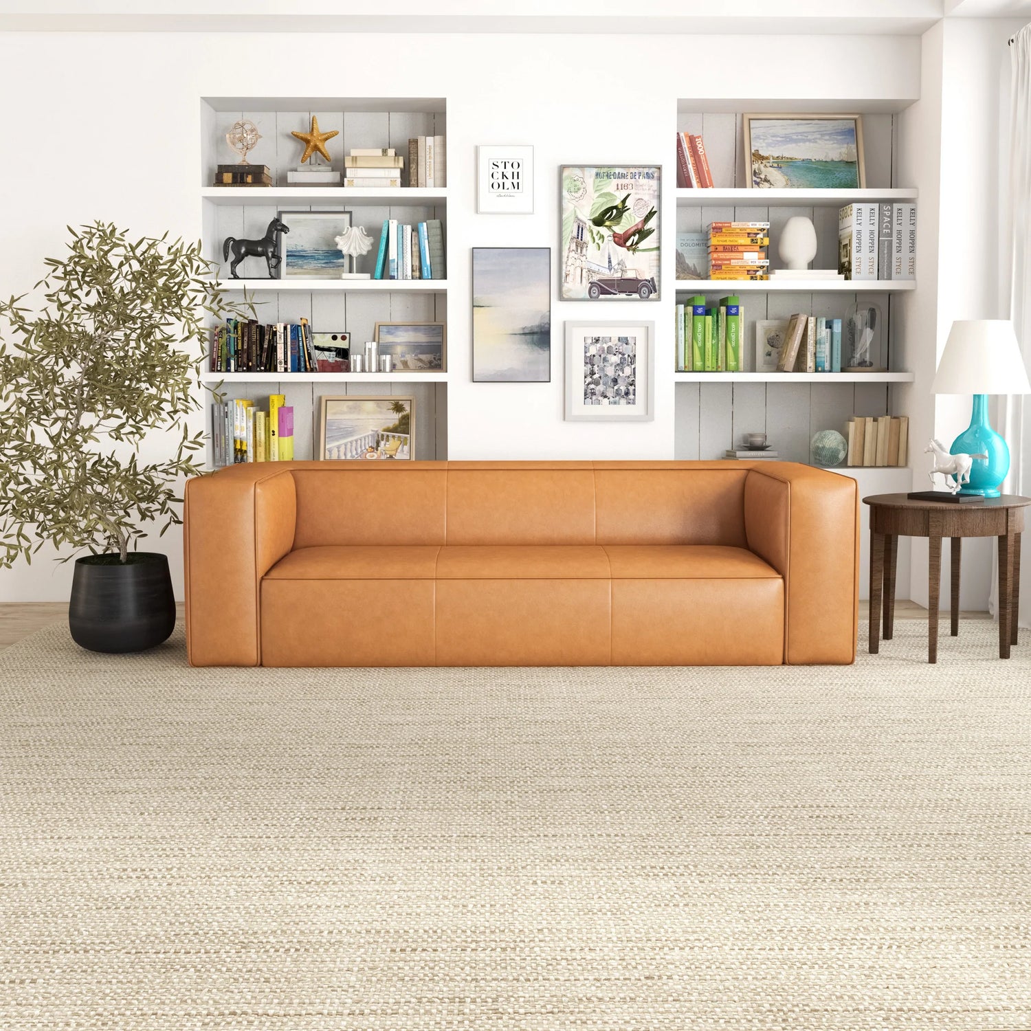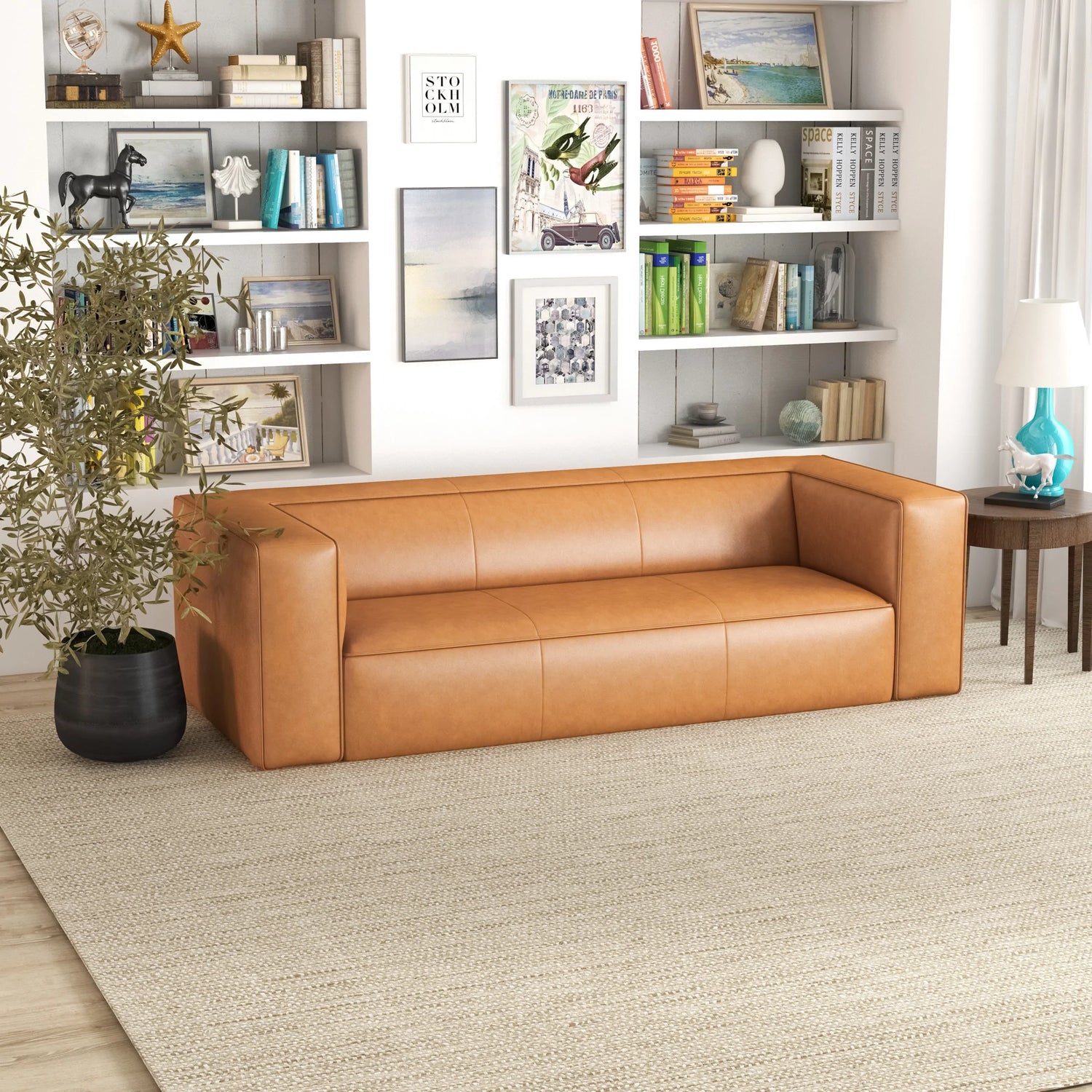 Mid Century Modern Inspired. The Emerson Sofa is the ultimate statement piece to any living space! Enjoy plush high density foam cushions easily becoming your favorite spot in your creative space. Emerson is upholstered in 100% top grain Aniline Leather imported from Italy with added button tufting. Impeccable craftsmanship ensure long-lasting strength and durability. Assemble in minutes! Emerson epitomizes quality craftsmanship and sold exclusively by Mid In Mod Furniture Stores In Houston