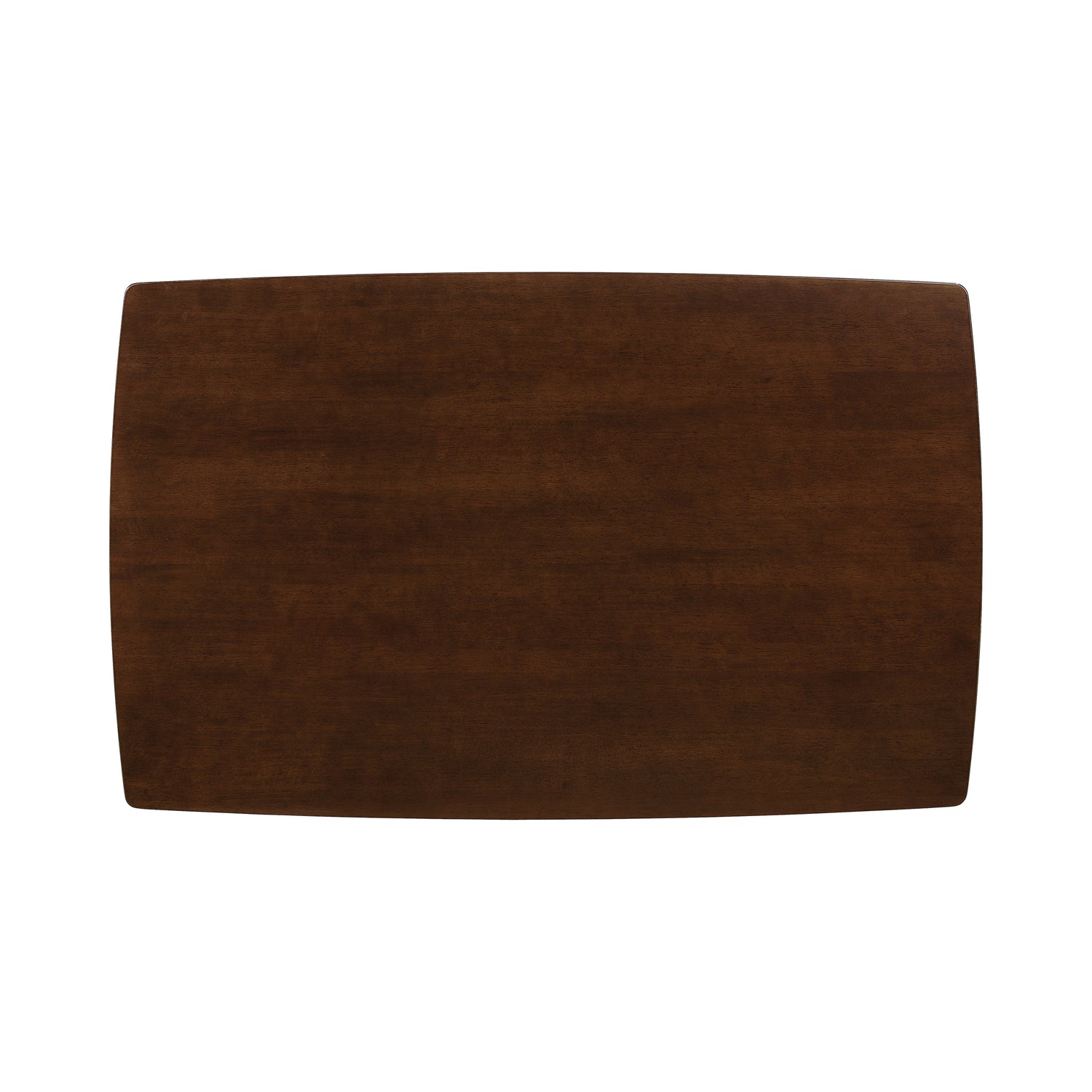 - Rectangular table features characteristic reverse bevel edges and angled legs
