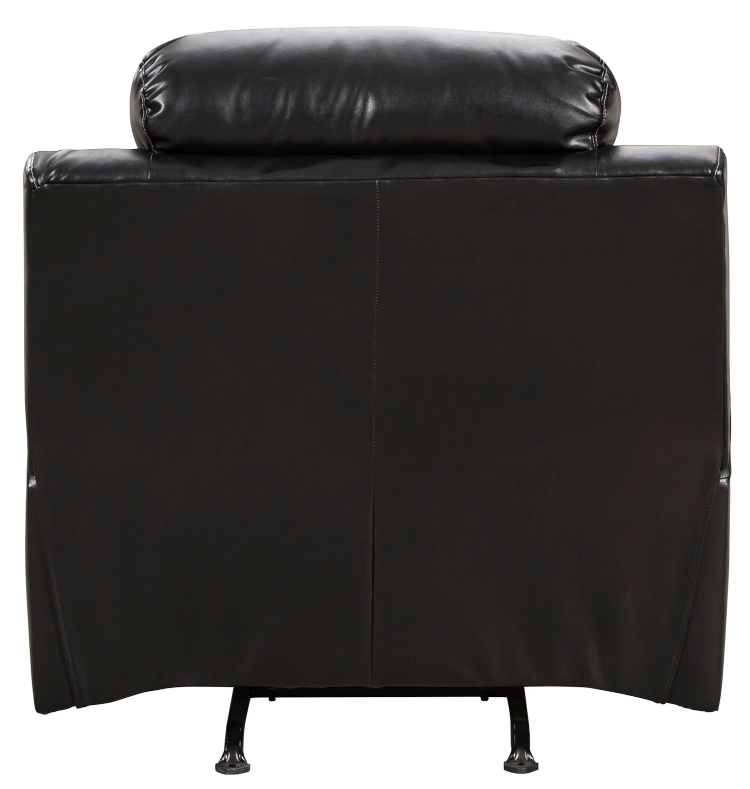You don’t just want to recline. You want to recline in high design. Wrapped in a fabulous black faux leather upholstery, the Kempten rocker recliner with 42" high back is everything you long for—and then some. Ultra clean lines, subtle curves and sumptuous comfort make it a sight for sore eyes and tired muscles. Here’s the showstopper: blue LED lighting along the chair base for a movie theater experience enjoyed from the convenience of home.- Gentle rocking motion
