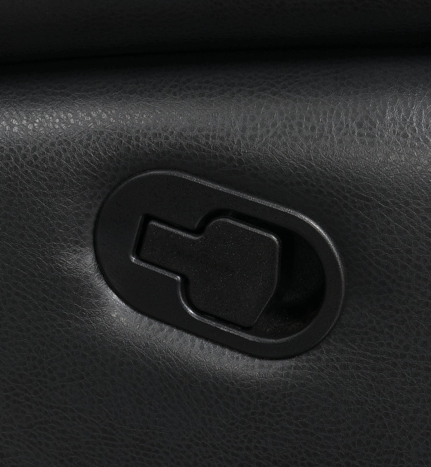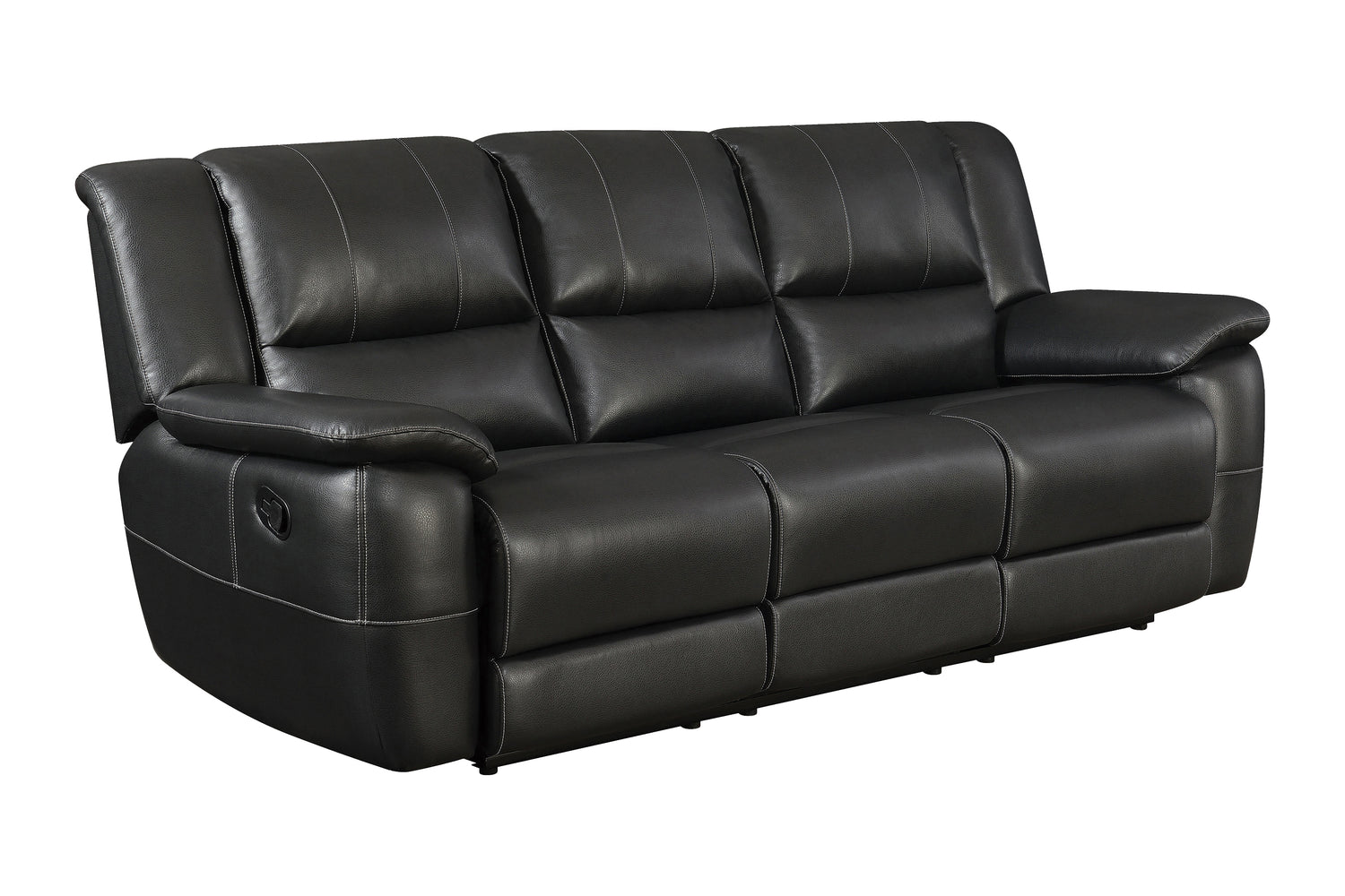 - Motion sofa collection upholstered in black performance-grade leatherette