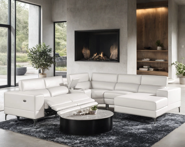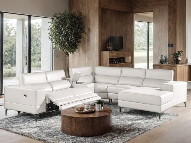 6PC MODULAR SECTIONAL FEATURES 2 POWER RECLINERS WITH ADJUSTABLE HEADREST.