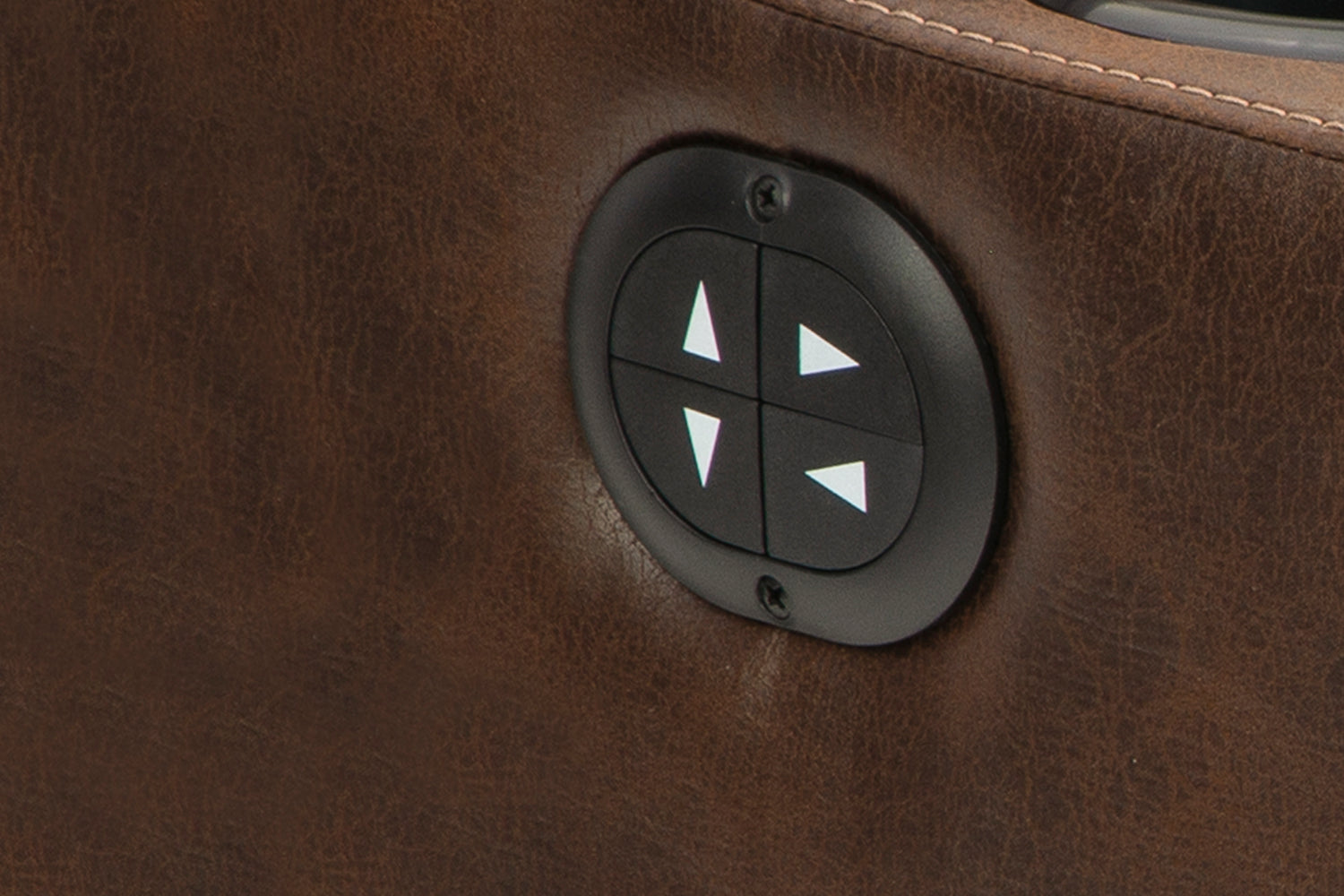 When it comes to style, you’ve got game. Rest assured, the Owner's Box power reclining sofa and loveseat set is sure to win you over with its ultra-cool looks and major league features. Showcasing all the bells and whistles, these designer recliners are inspired by sports car interiors—with a fabulous faux leather accentuated with horizontal channel tufting. An advanced one-touch power control with an Easy View™ power headrest puts you in the driver's seat.- Includes power reclining sofa and power reclining loveseat