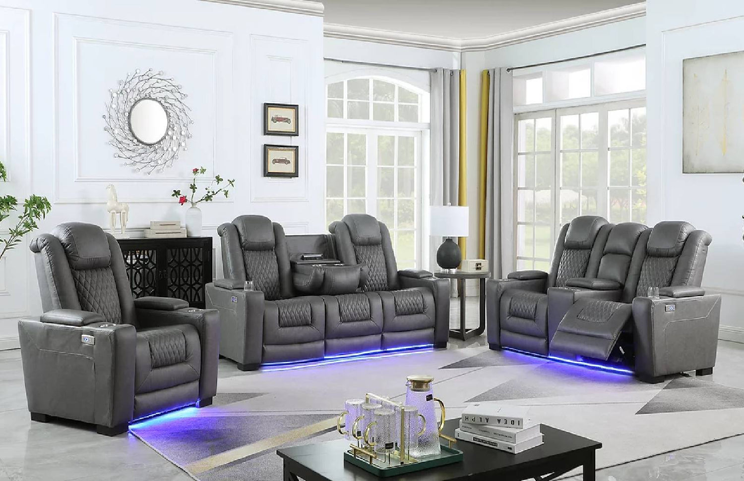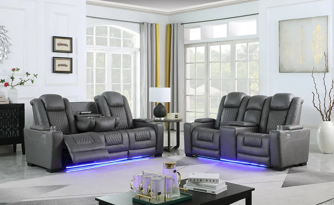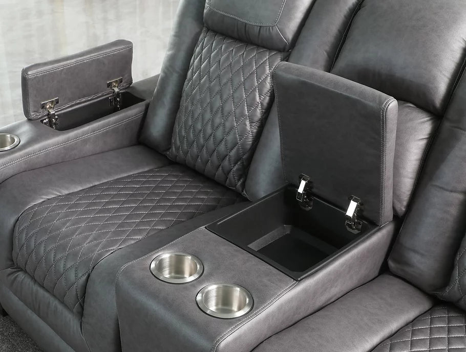 Features: Power Reclining, Storage Console, Wireless Charger, Power Outlet, Storage Arm, USB Plug, LED Lights, Drop Down Table.