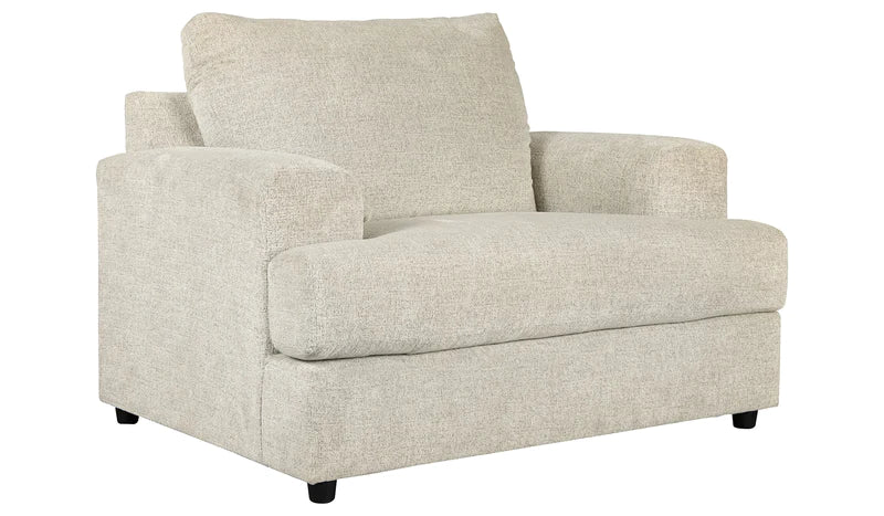 Flaunting a trendsetting silhouette, the Soletren oversized chair puts the contemporary in your contemporary home. Seating space is ample, giving you elongated plushness for deep relaxation. Chunky chenille fabric satisfies your need for a piece that feels as good as it looks.- Corner-blocked frame