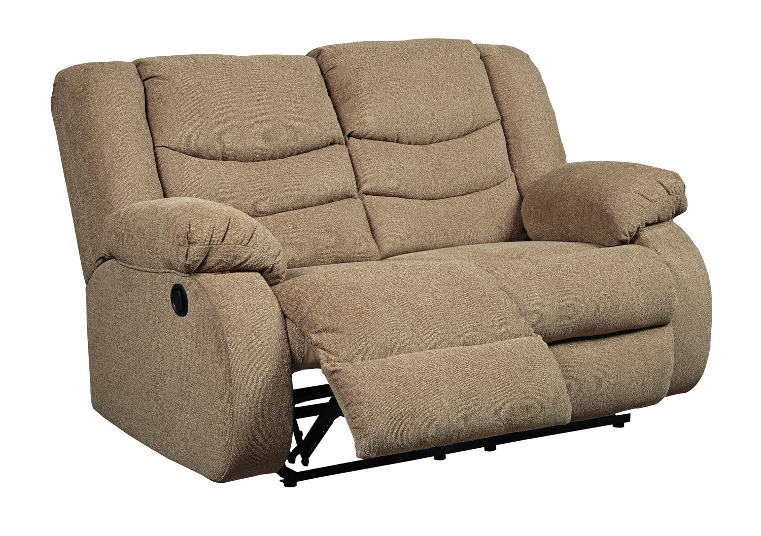 The Tulen reclining sofa and loveseat set puts the win in winning. Its waterfall back design and doubly plump pillow top arms team up with soft chenille fabric to go for the goal. Ample seating room makes the comfort possibilities endless. Sit back and relax. You won’t go wrong with this reclining set.- Includes sofa and loveseat