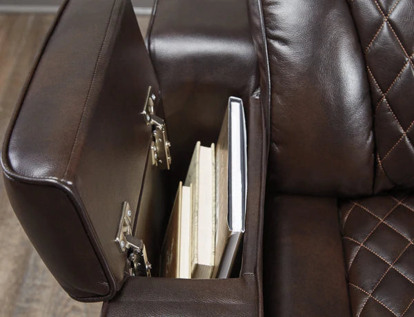 Warnerton Chocolate Power Reclining Loveseat with Console | 7540718
