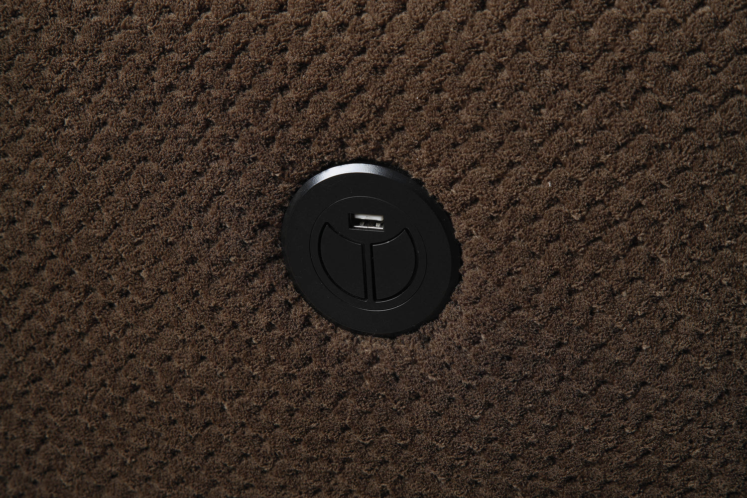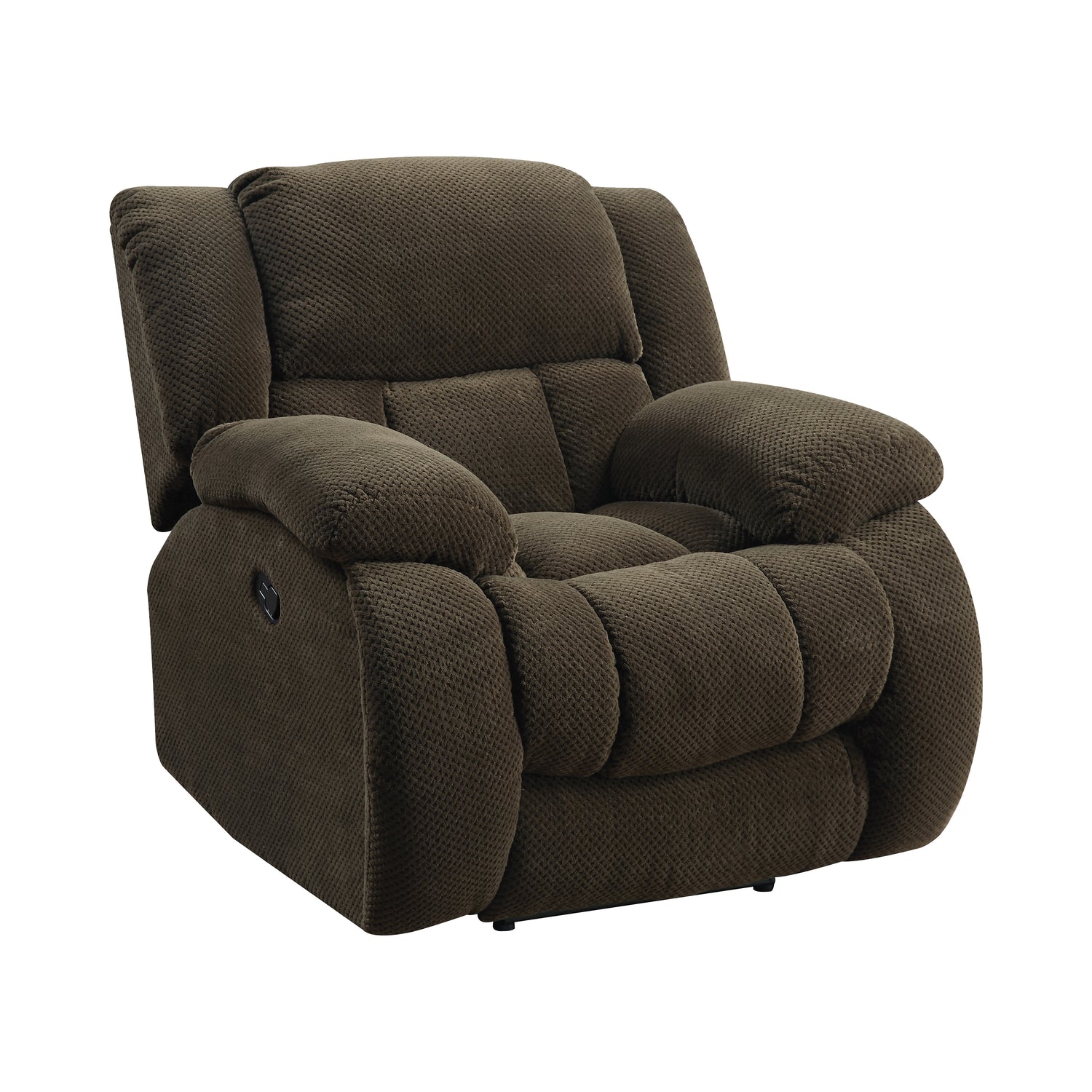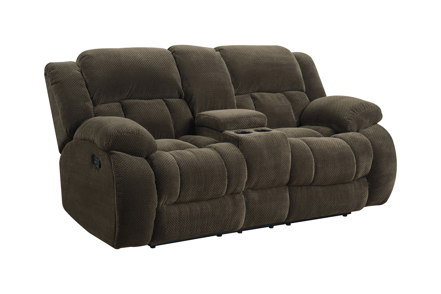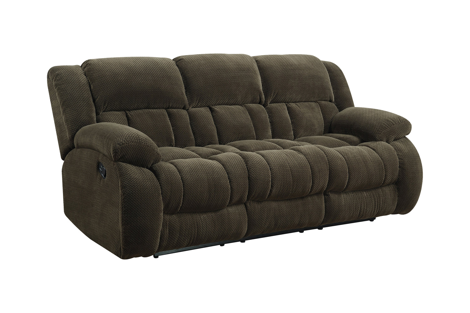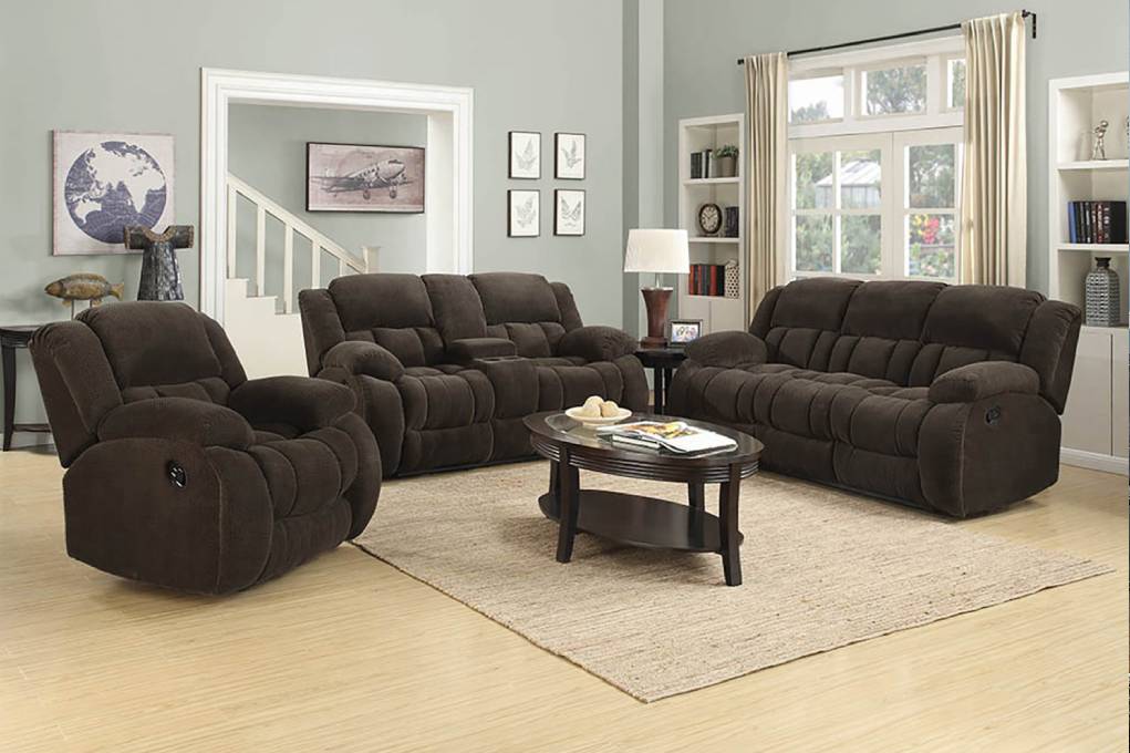- Motion sofa collection upholstered in chocolate brown padded textured fleece