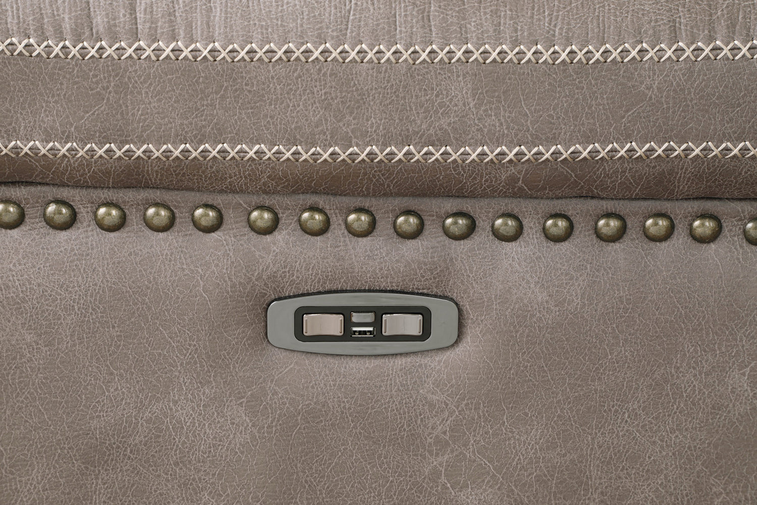 Streamline the style of your living room with this power reclining sofa, loveseat and optional recliner set. Detailed stitching and individually applied antique brass nailhead trim make a stunning statement for this set. Luxurious gradecoated microfiber in brown makes it easy to blend with your existing decor. The power reclining sofa comes equipped with a center console to conceal remotes. Find two stainless steel cup holders to keep beverages for yourself and a friend.