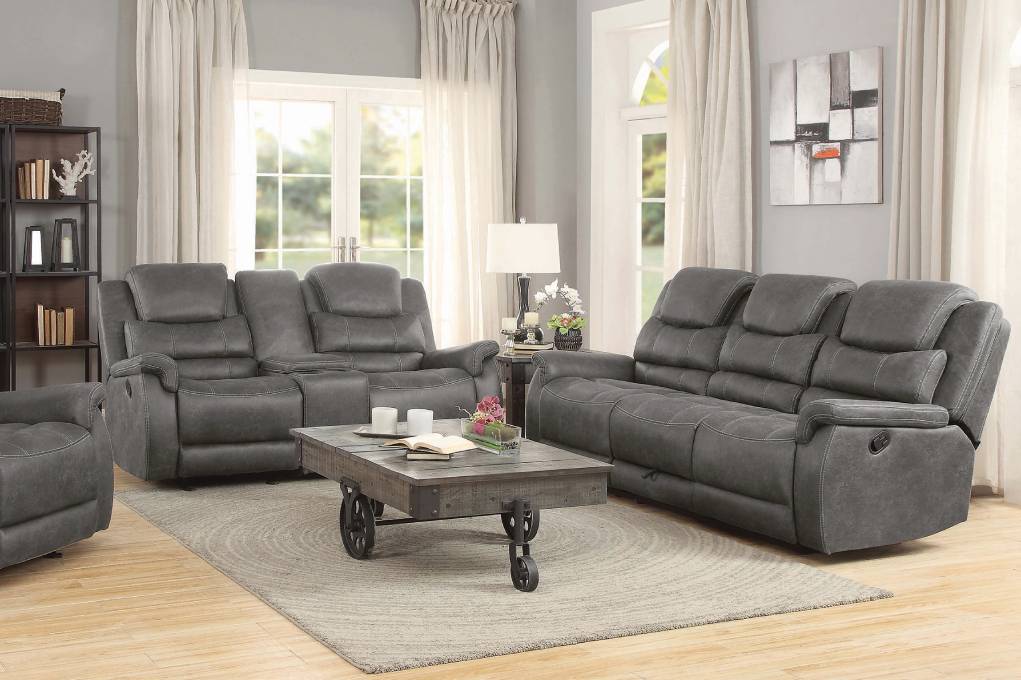 - Set includes: One (1) motion sofa, one (1) glider loveseat and one